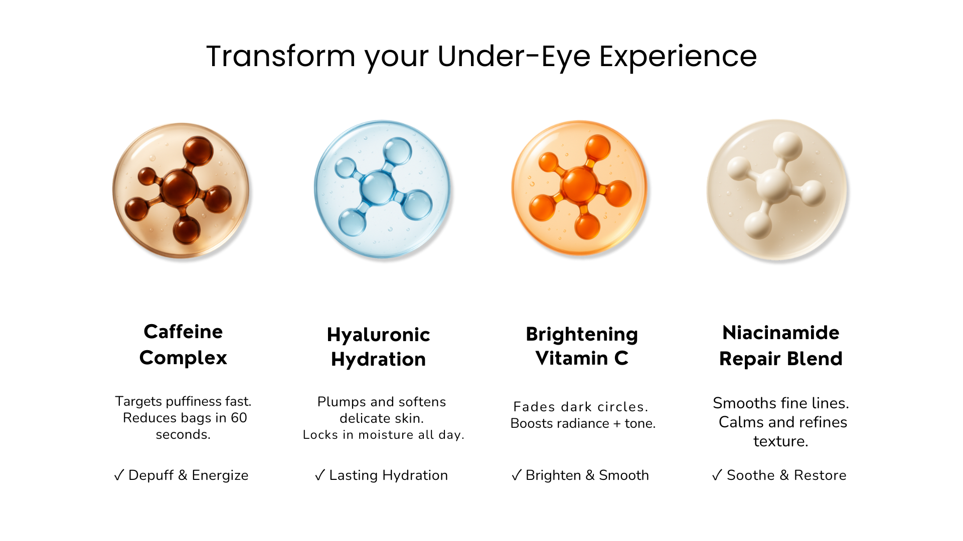 Cooling pen tip + caffeine help depuff swollen under-eyes on contact.Your heading text goes here